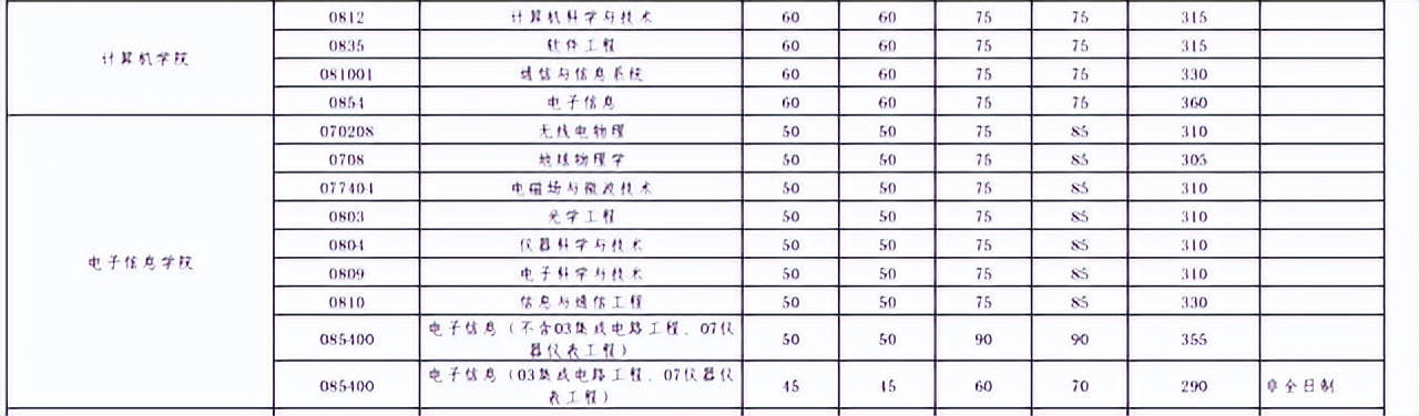 只有电气学院的电气工程、控制工程、控制科学与工程分数线在380以上。