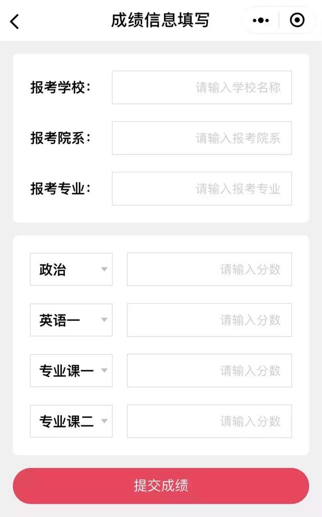 小程序使用流程及图文(1)微信小程序搜索“考研排名”,选择“所有研究生使用的考研排名”,填写成绩信息。