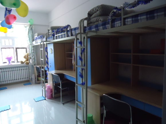 哈尔滨学院。明亮的地板,整齐的陈设,窗边的小熊,似乎都表明这是一个女生宿舍。